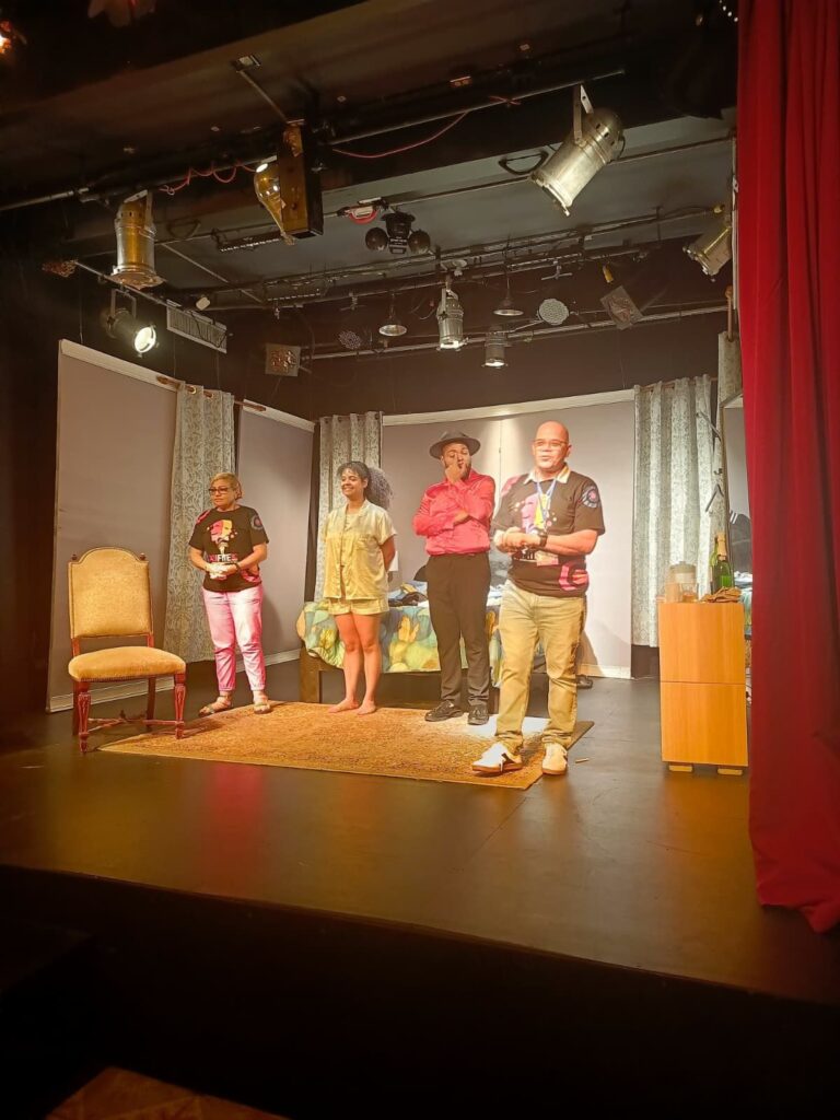 El escenario del Teatro Guloya fue testigo de la puesta en escena de la aclamada pieza “El Diablo ya no vive aquí”, del maestro Giovanny Cruz Durán, bajo la dirección general del profesor José Bonilla y la asistencia de Susana Stubbs, con las actuaciones estelares de Manuela Tavárez y Marcos Alejandro.