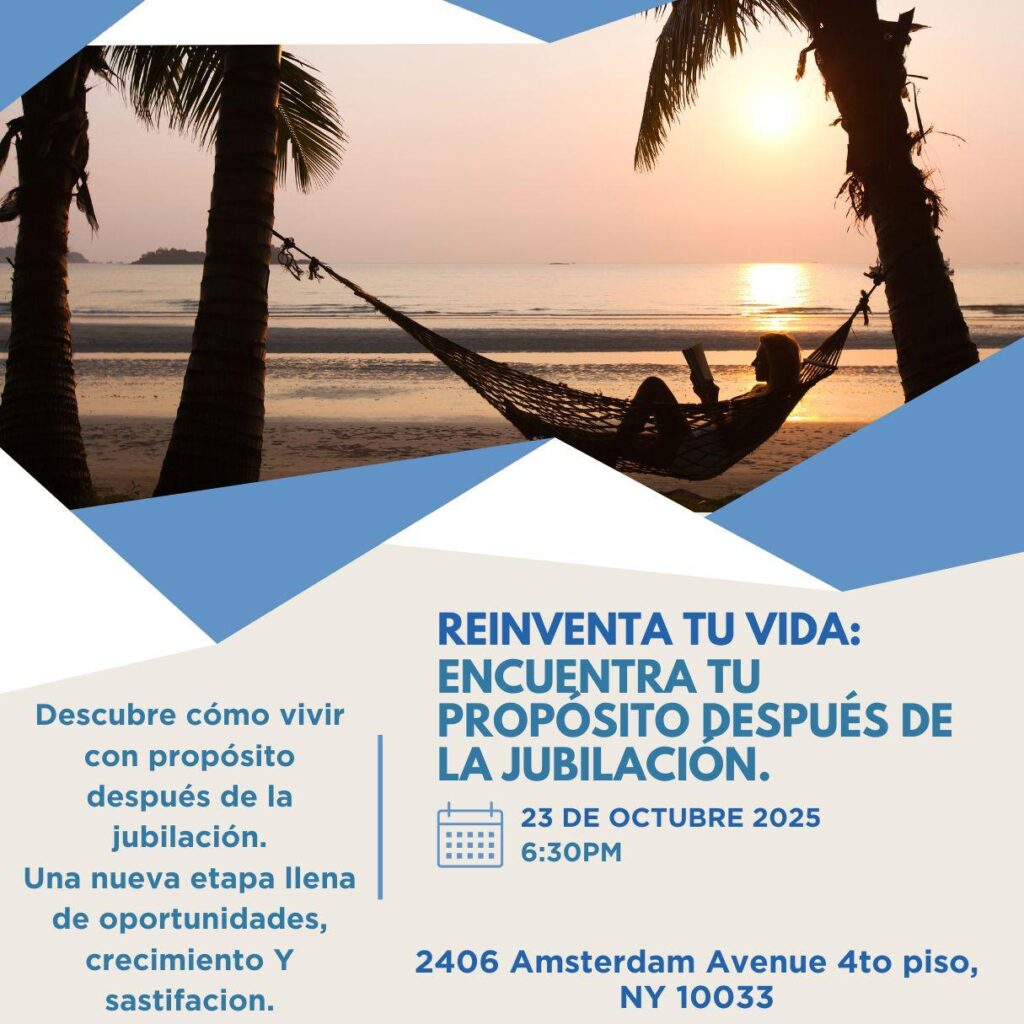 NUEVA YORK. – Con el propósito de ofrecer herramientas prácticas, emocionales y espirituales para las personas que han concluido su etapa laboral activa, la reconocida psicóloga clínica y conferencista Aris Lico anunció la conferencia “Reinventa tu vida: encuentra tu propósito después de la jubilación”, que se llevará a cabo el próximo jueves 23 de octubre, a las 6:00 p.m., en el 2406 Amsterdam Avenue, 4to piso, en la ciudad de Nueva York.